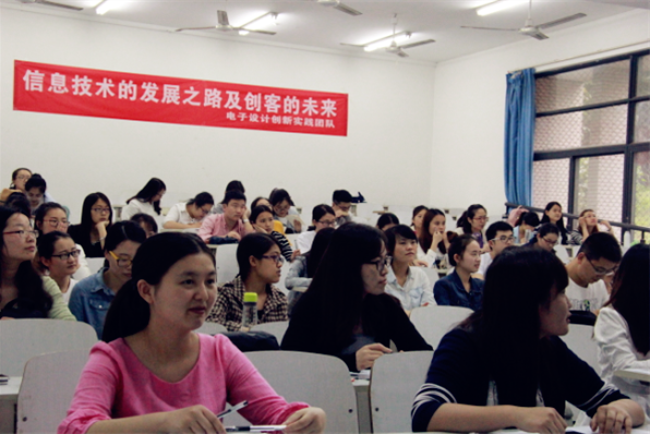 郭刚老师,担任中学信息技术、通用技术、综合实践教研员、高级教师。首先,他围绕“如何上好信息技术课”开展讲座,并对信息技术的发展进行了讲解,让学生们深刻了解了现代信息技术条件下信息技术课应该如何教学。接着,他发表对创客未来发展的见解,为在场同学打开了精彩的思想之窗。在场的同学都认真的聆听,深觉获益匪浅,为以后的教师之后奠定了基础。