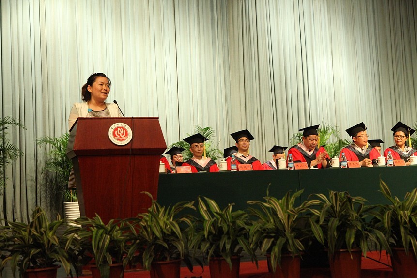 校党委副书记龚燕同志宣读校级和市级优秀毕业研究生的表彰决定