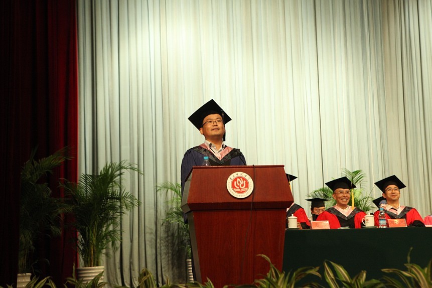 校党委书记邓卓明教授在致辞中高度赞许了毕业研究生在求学期间展现出的熠熠风采,并与毕业生共勉四点赠言:一要坚持知行合一,二要坚持科学研究精神,三要勇于追求梦想,四要脚踏实地乐于奉献。希望今日的同学、明日的校友们在今后的人生征途中,将重师精神薪火相传,实践自己不平凡的卓越人生。