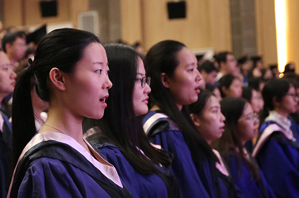 典礼上,周校长饱含深情的言语、满怀希望的话语赢得了全体毕业研究生一次次雷鸣般的掌声。同学们表示,绝不辜负母校的殷切期望,在未来的学习、工作、生活中,一定会心中有信,努力拼搏,书写人生新的精彩华章。最后,全体毕业生起立,一起高唱校歌,毕业典礼在优美激昂的旋律中圆满地落下帷幕。