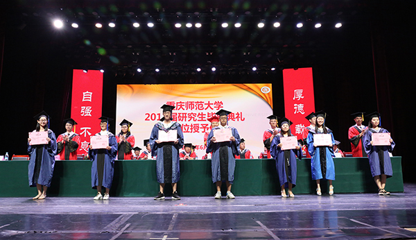 校学位评定委员会副主席、副校长董景荣教授宣读了《重庆师范大学关于授予王晶等763名研究生硕士学位的决议》,祝贺763名学子顺利毕业并获得学位。