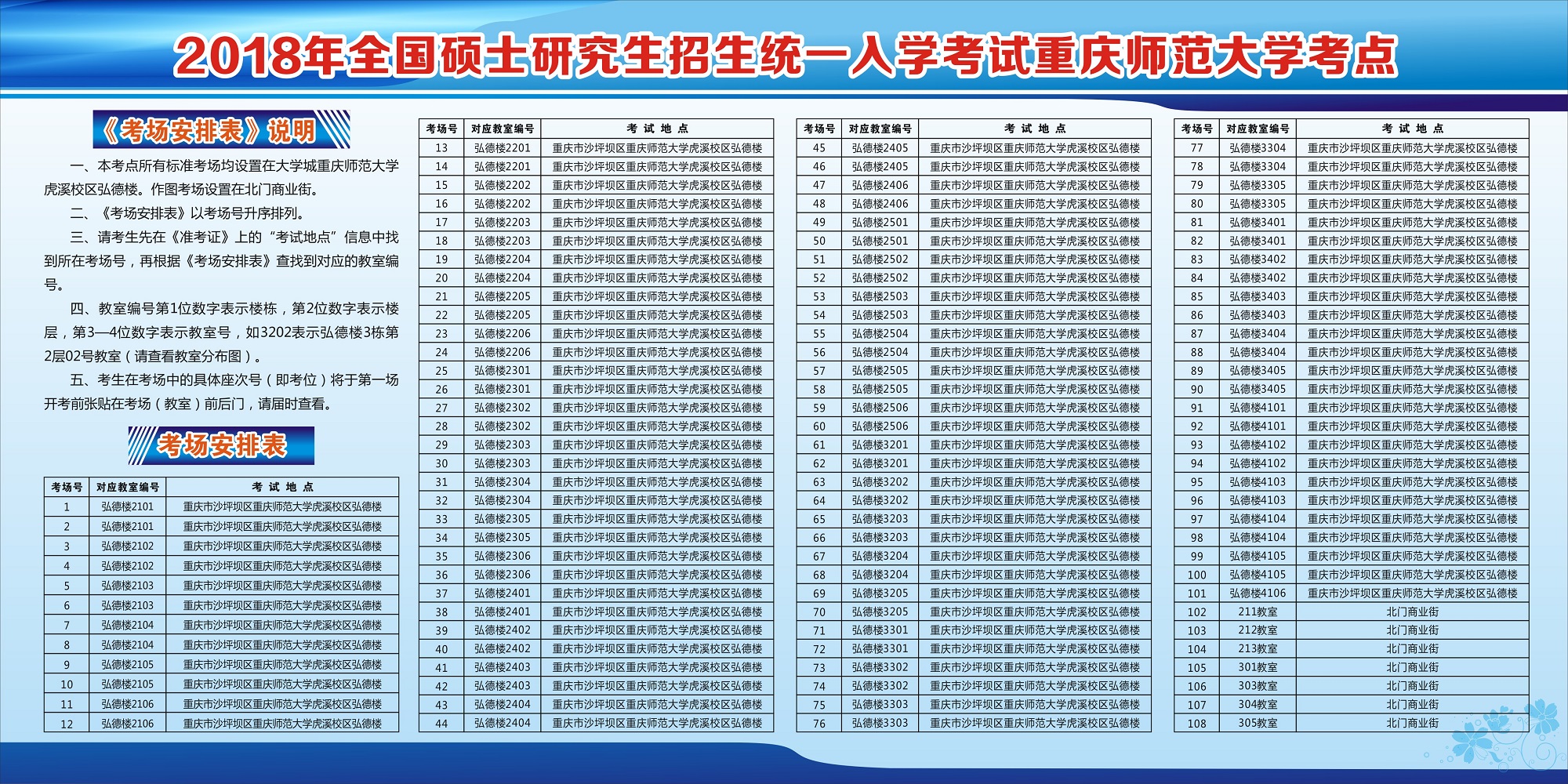 2018年考场分布